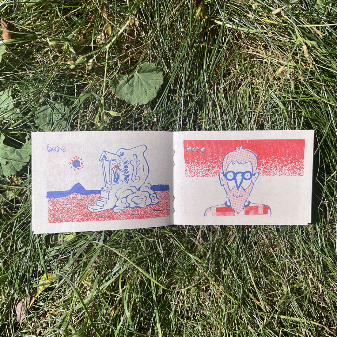A two-color risograph-printed comic in an envelope. It's about when the spirit takes over.